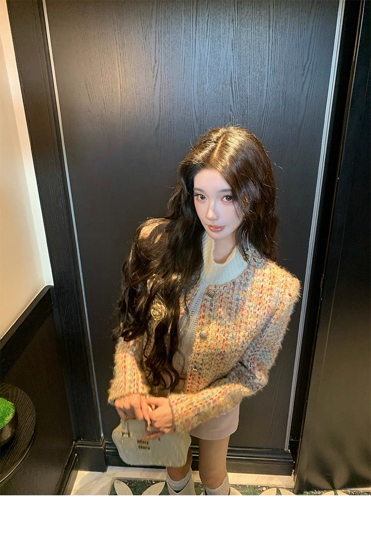 Round-Neck Elegant Tweed Jacket for Women C0005