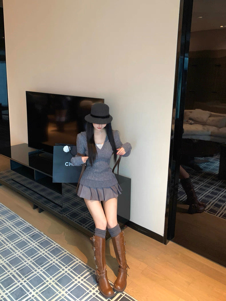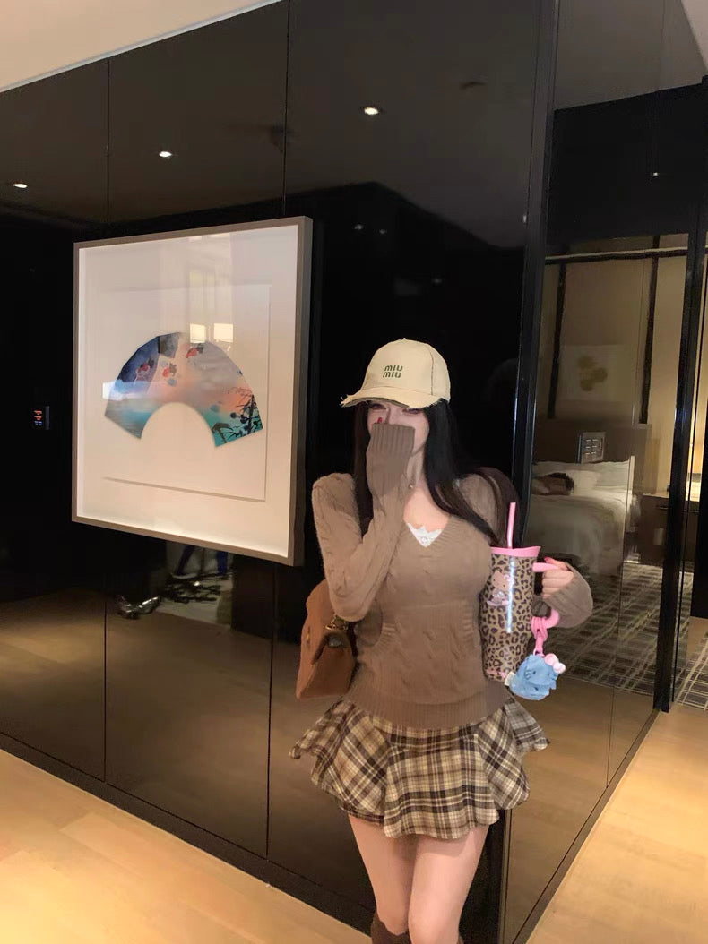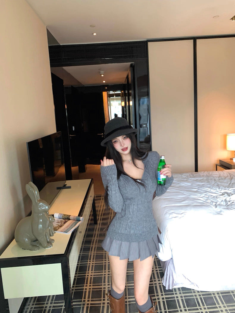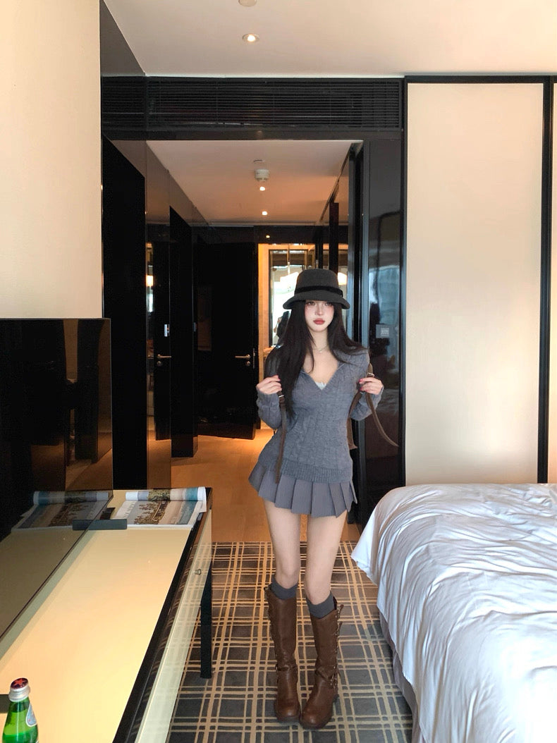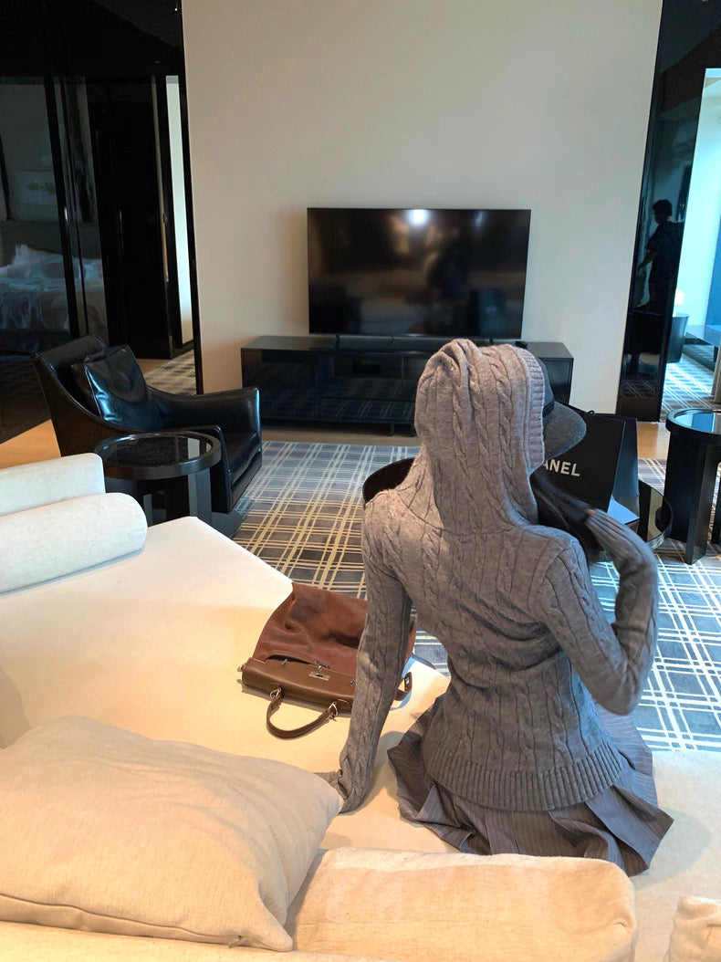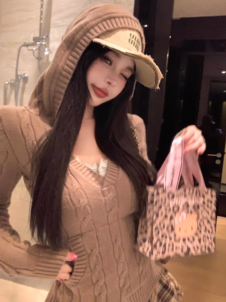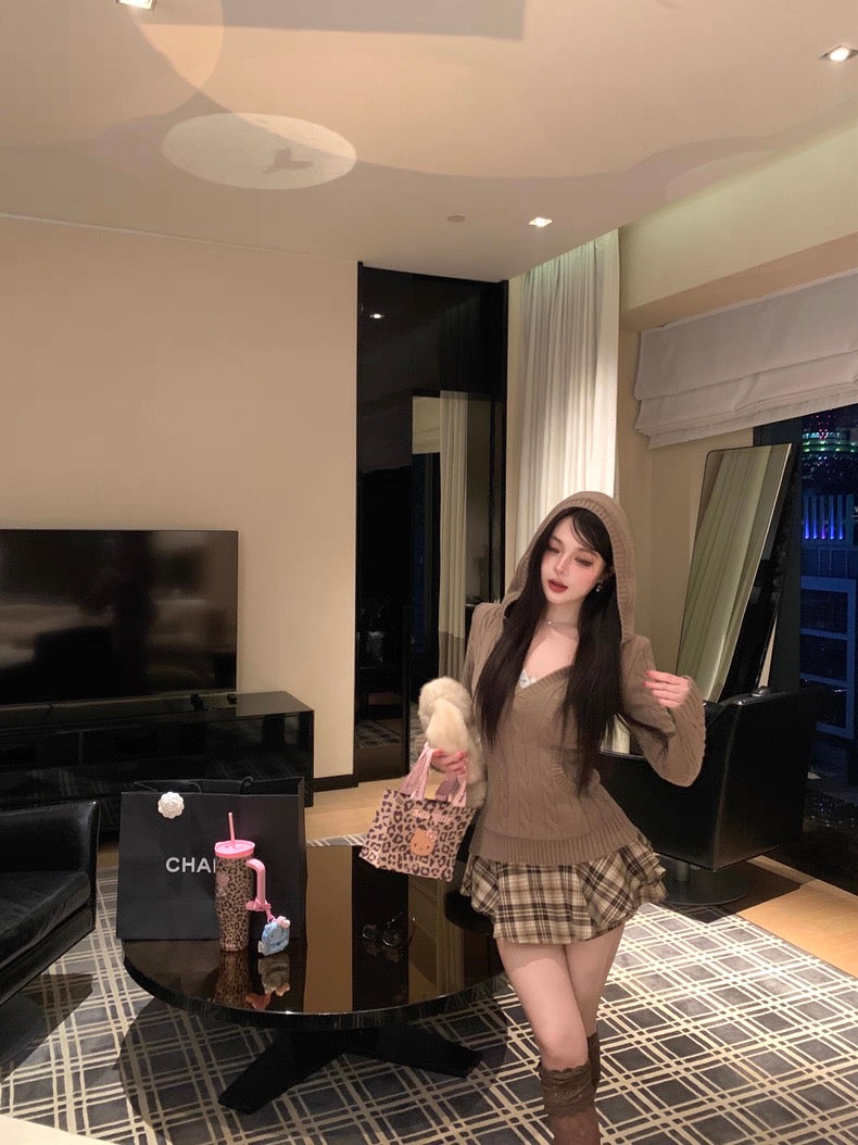 V-Neck Hooded Knitted Pullover for Women C0020