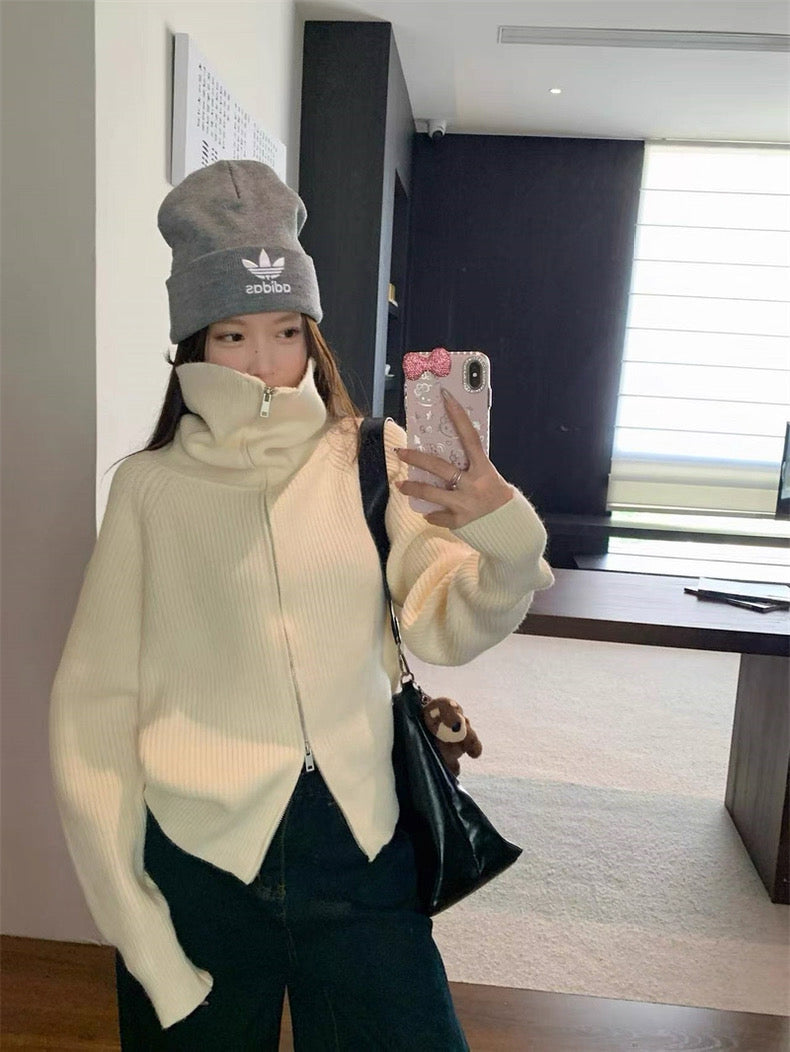 Zip-Up Stand Collar Knit Sweater Jacket C0021